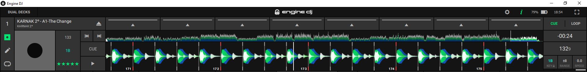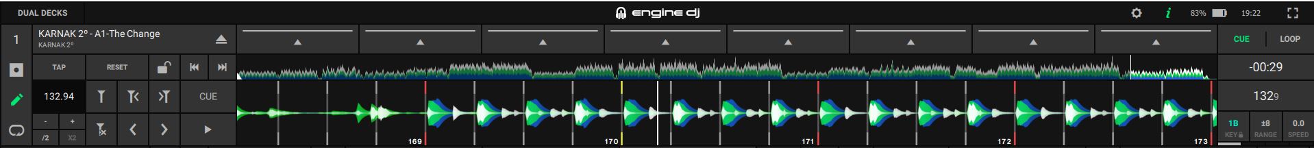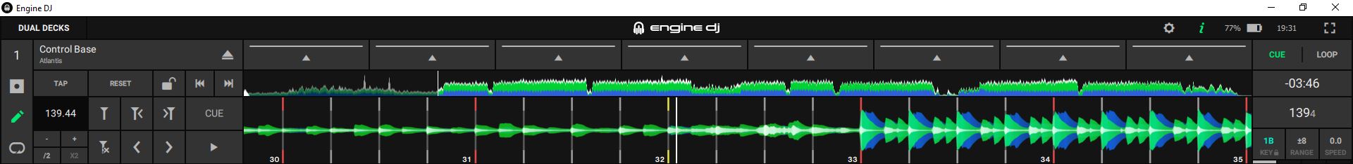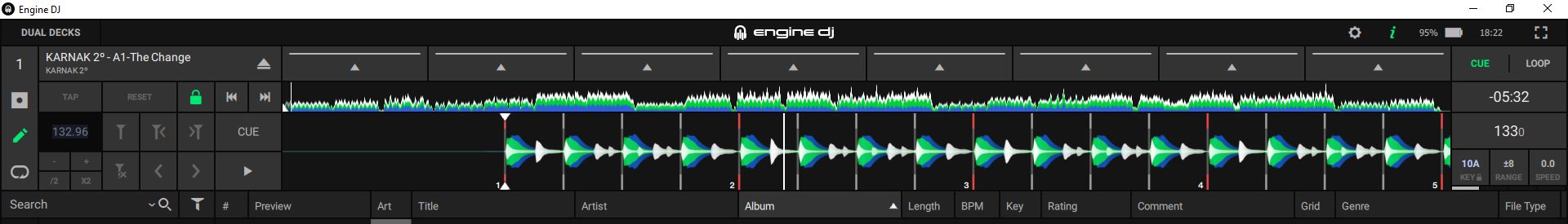 But this time, taking as an application for dynamic analysis, VDJ. That is, I have analyzed the Karnak track with Edit BPM, Re-Analyze Multiple BPM. And, although VDJ seems less precise, at least it doesn’t seem to introduce as many markers, which means that when exporting to Engine DJ it does display the track with all its markers from start to finish (although, again, they don’t seem as perfectly aligned as with Rekordbox).
