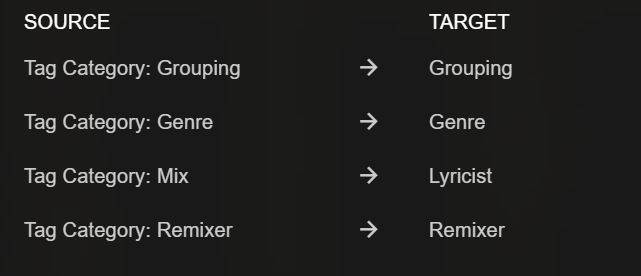 the second pick is the field mapping. I am taking my “Mix” category custom tag and mapping it to lyricist. When I write the tags, this is what shows up after I read them.