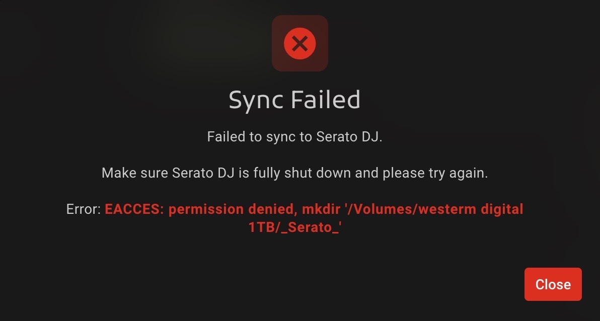 I deleted and reinstalled both Lexicon and Serato multiple times. Still, the error message keeps referencing the Western Digital external drive, even though it’s not connected and Lexicon couldn’t have encountered it before.